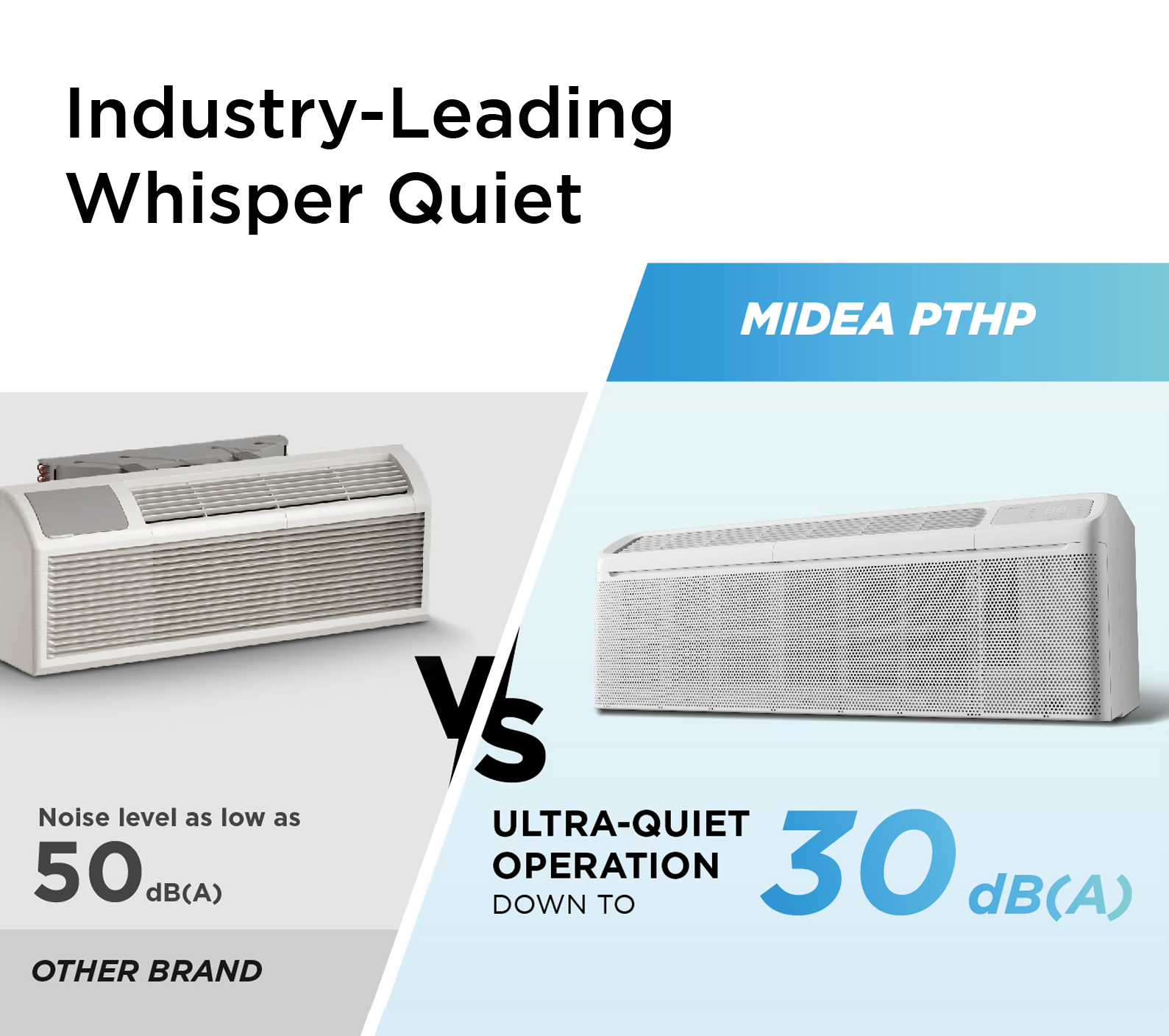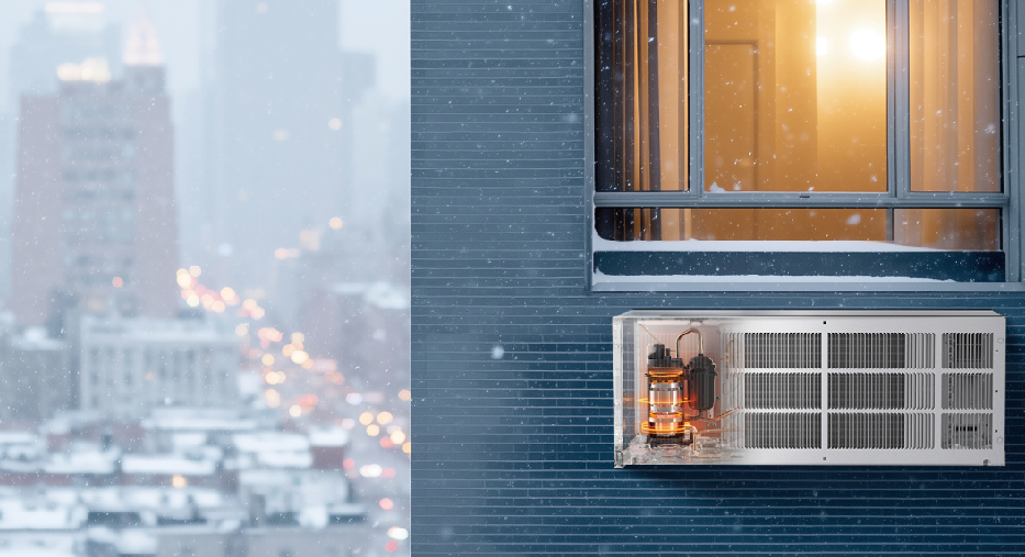 The Midea Packaged Terminal Heat Pump delivers 100% heating at 5°F with COP of 2.0, eliminates electric resistance backup, and simplifies installation with its compact all-in-one design — achieving up to 75% energy savings compared to traditional fixed-speed PTAC units.